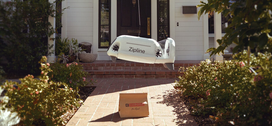 Chipotle’s new delivery option, Zipotle, will use Zipline’s fleet of quiet, zero emissions aircraft, to make deliveries. [Photo: Chipotle Mexican Grill]