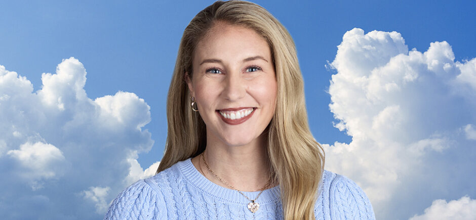 Sabrina Callahan, SVP and Chief Digital & Marketing Officer at Southwest Airlines. [Sources: Photo, Brianna Juda/Southwest Airlines; Background, istockphoto; Composite image, DI Studio]