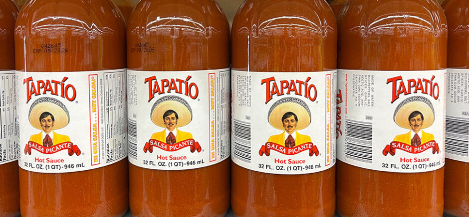 Grocery store shelf with bottles of Tapatio brand Salsa picante Hot Sauce. Tapatio has been acquired by Dallas-based Highlander Partners. [Photo: Sheila Fitzgerald/iShutterstock]