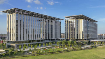 Wells Fargo's two-tower campus will overlook Lake Carolyn in Irving's Las Colinas. [Rendering: Corgan]