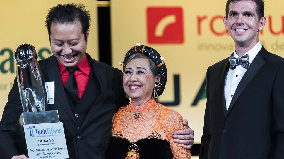 Henry Vo, Richardson ISD, Tech Titan of the Future, High School award recipient, Hang Vo (Henry’s proud mother) and Peter Harish, Vice President, VLSIP Technologies, Inc.