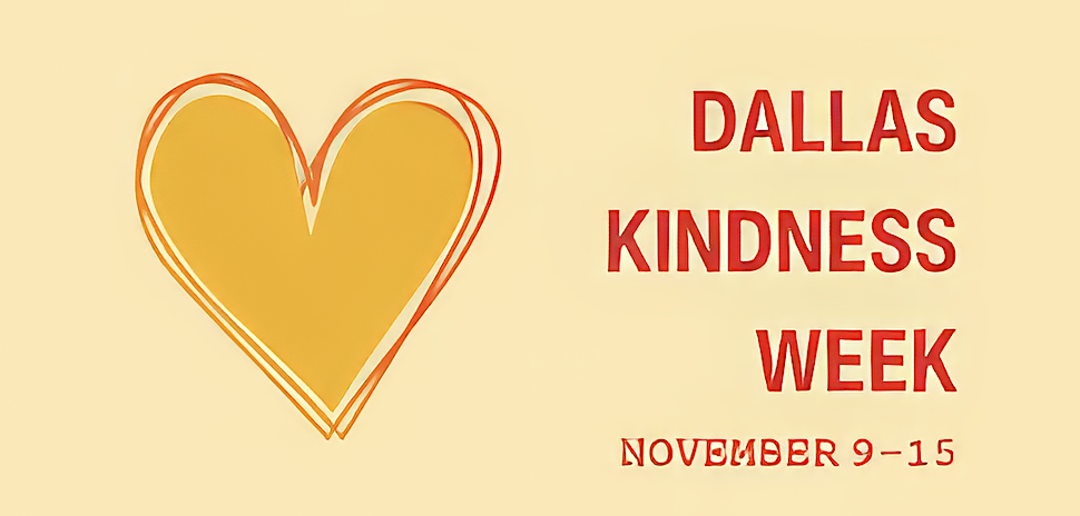 The week will culminate with the Dallas Kindness Festival, a free, full-day public celebration at Annette Strauss Square in the AT&T Performing Arts Center on Saturday, Nov. 15. The festival will feature live performances, storytelling, family-friendly activities, and a closing declaration that Kindness Lives Here. There will be ongoing entertainment, food trucks, performances from surrounding schools, and recognition for those who value kindness.