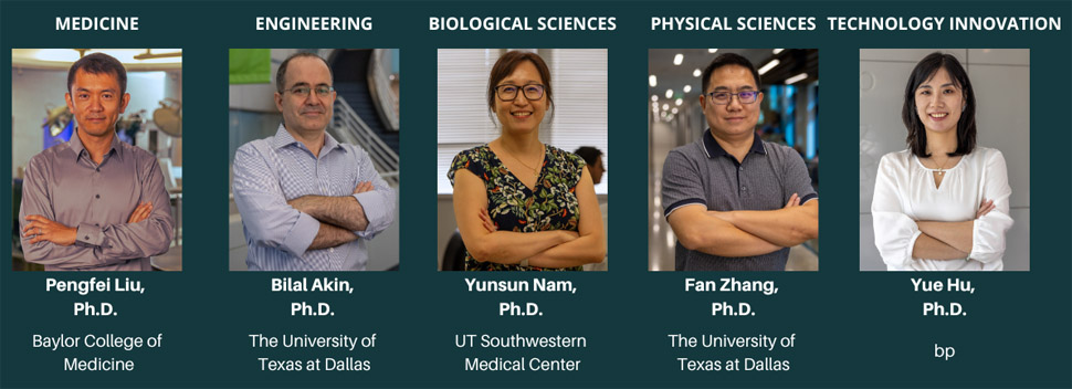 The Dallas honorees—two from The University of Texas at Dallas and one from UT Southwestern Medical Center—were named alongside recipients from Baylor College of Medicine and bp.