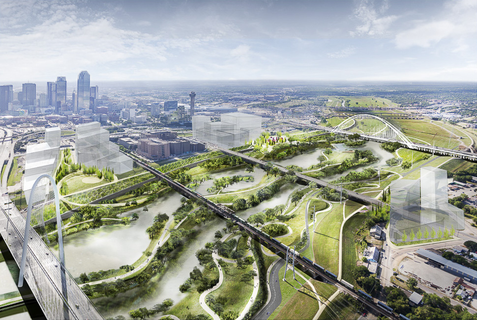 The Trinity River Park concept, unveiled by Mayor Mike Rawlings last May, encompasses more than 285 acres of land near the heart of downtown Dallas. The concept — more than 50 times larger than Klyde Warren Park — envisions a new naturalized river landscape that is ever-changing with miles of pathways and trails within the levees, and includes sites for five elevated parks that will extend from inside the levees into the adjacent communities, according to a release. The concept, which was funded through private donors, also allows for the Trinity Parkway, which will provide primary access into the park and will require separate funding.