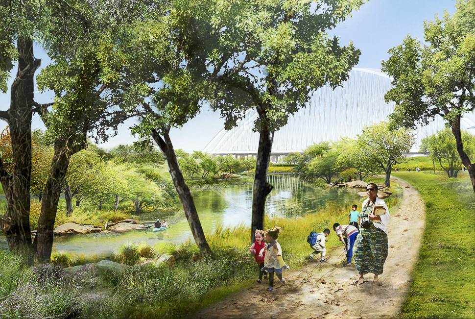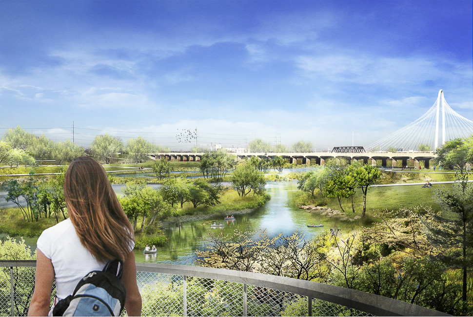 The Trinity River Park concept in the Trinity River floodway welcoming a two-to-three year flood event.