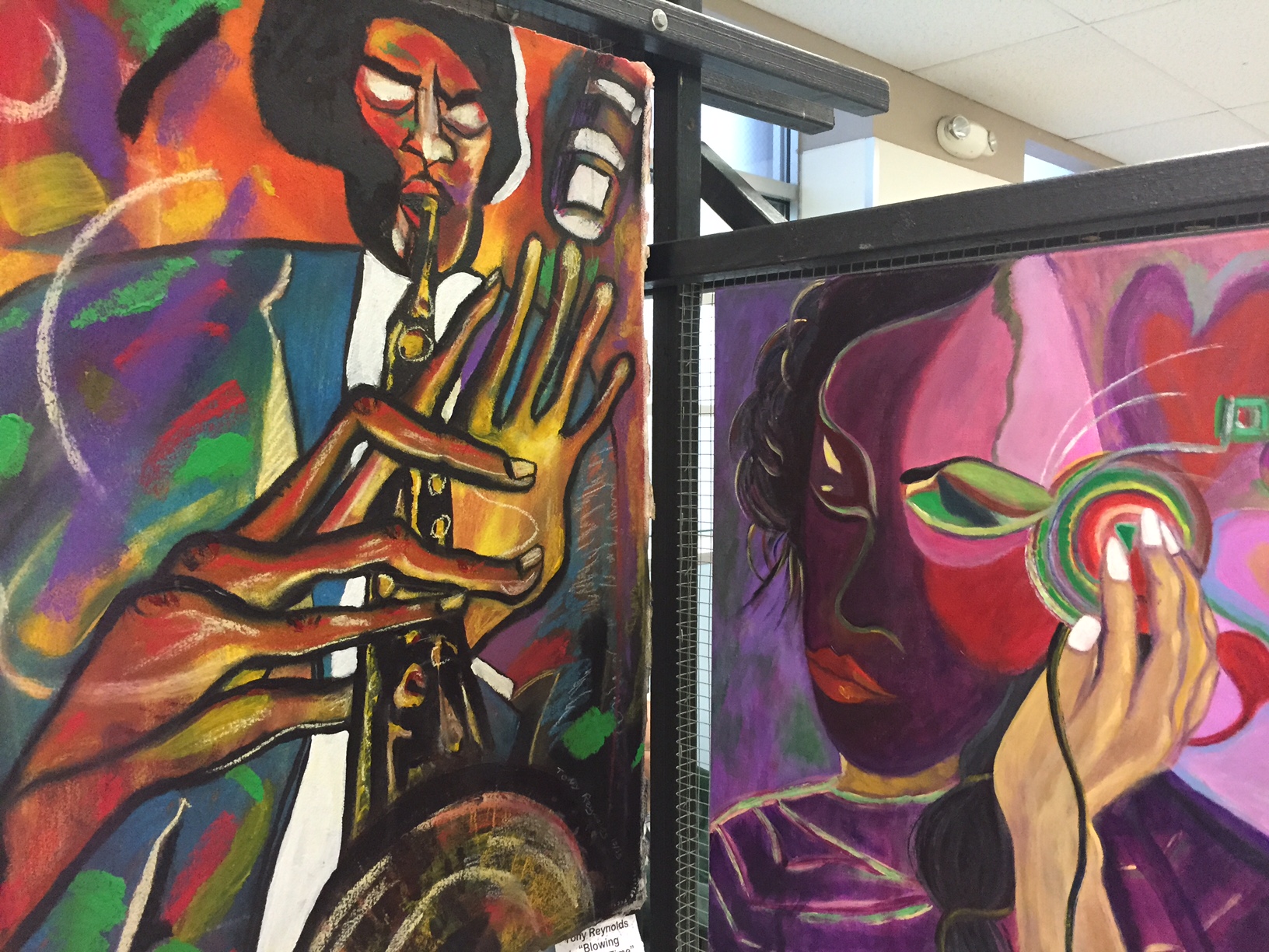 Works by various Stewpot Open Art Program artists. Photo by Christine Rogers.