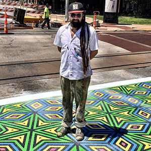 Last week, the self-taught Dallas artist walked along an Uptown crosswalk newly imprinted with designs inspired by his fiberglass wall sculptures.