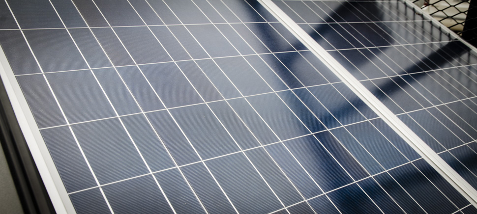Solar thermal panels heat up, generating heat that warms the salty mixture. The water separates from the salt as it becomes humid air. [ Photo: Hannah Ridings ]