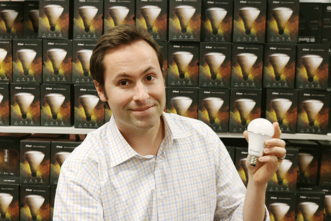 Corey Egan, co-founder of Ilumi, holds his app-controlled light bulb. The bright idea landed him a $350,000 investment from Mark Cuban, after appearing on “Shark Tank” in 2014.