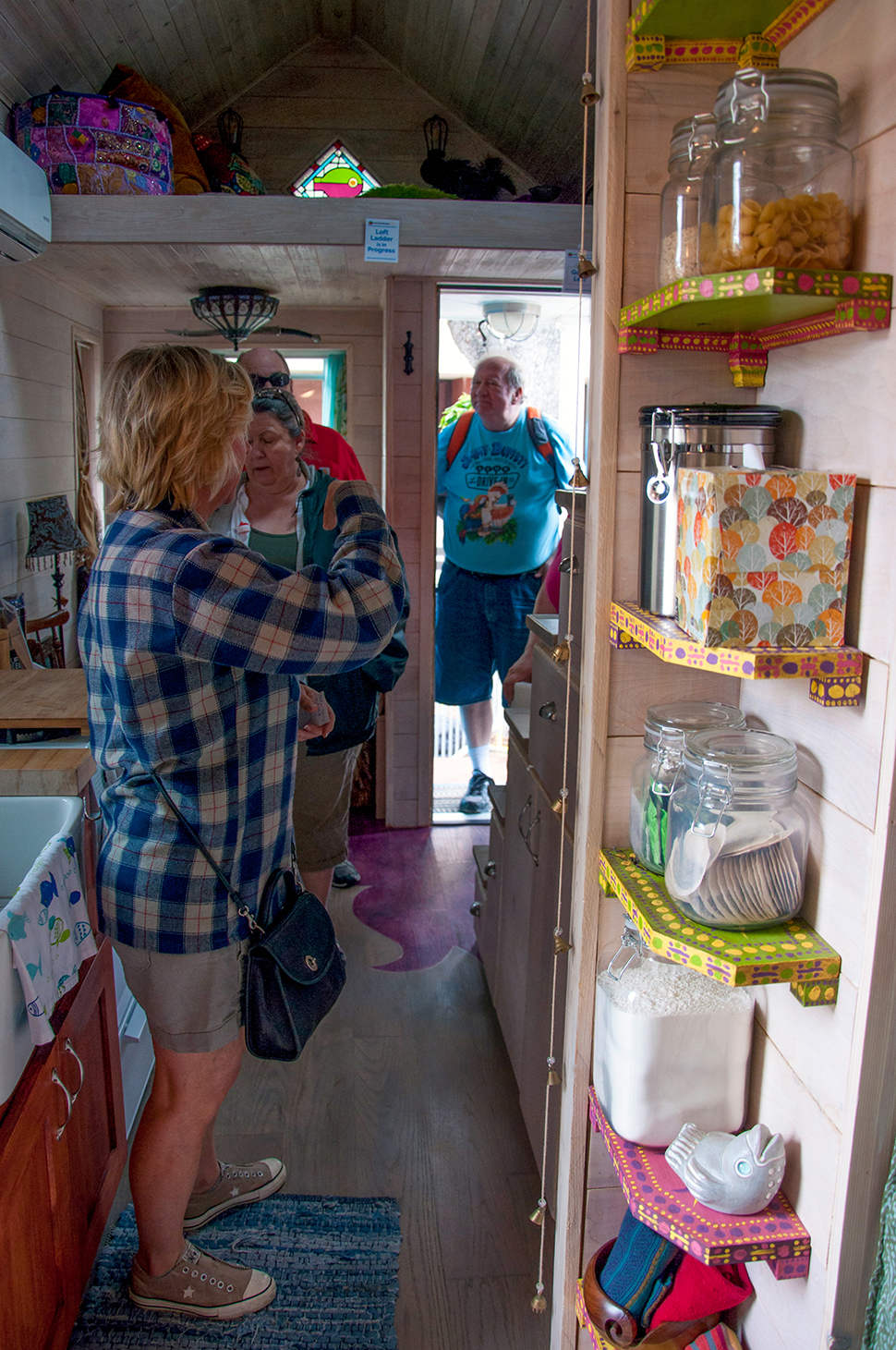People tour a tiny house in Tiny House Village at Earth Day Texas.