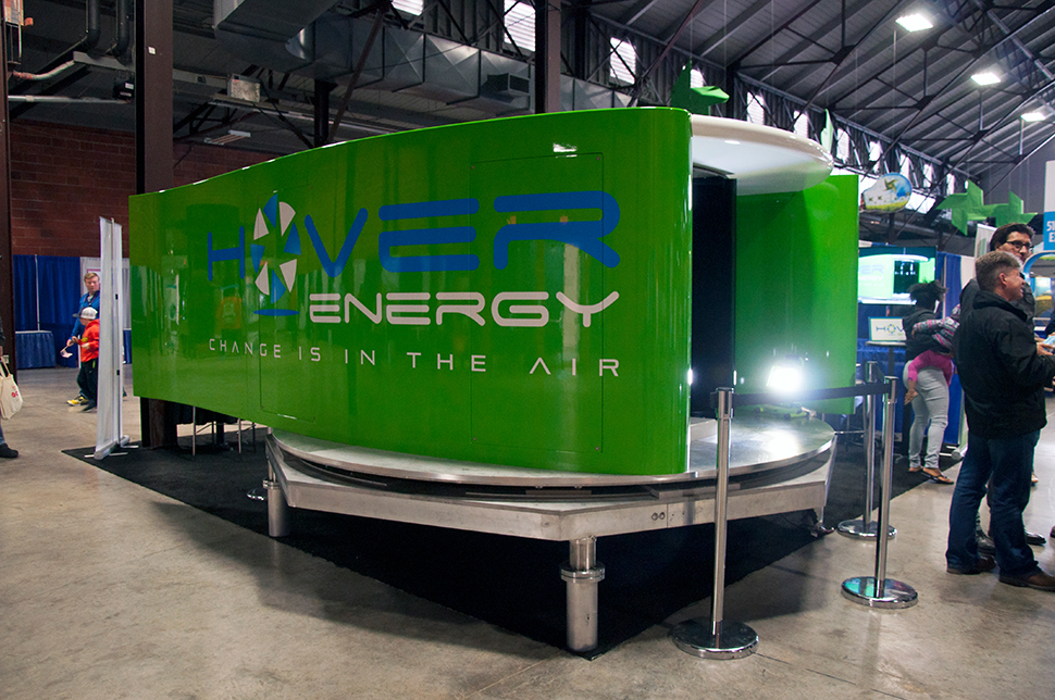 A wind turbine created by Hover Energy at its booth at the Innovation Expo at Earth Day Texas.