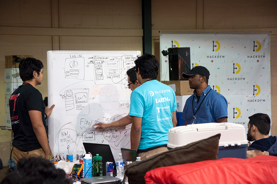 Teams at Earthhack (Hackathon) spend 36 hours coding and building software around a sustainability idea.
