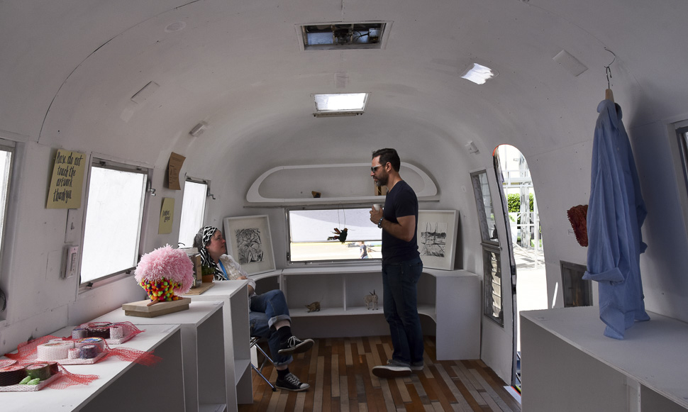 Deanna Ooley, left, is the “lady with the vintage airstream art gallery.” Thoughtful Hands displayed eco-friendly art. [ Photo: Dallas Innovates ]