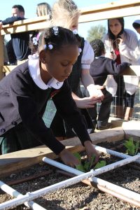“With the little ones, it may be planting seeds and learning about things they’re reading in their books or on their iPads, but in real life,” says communications director Katie MacDonald. “For upper-elementary school, I can see them incorporating math and technology a little more, where teachers can challenge students to calculate gallons of water needed and things like that.”