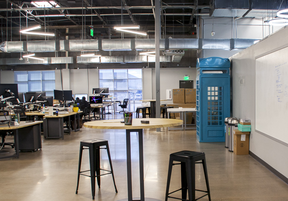 When Varidesk first bought the building in May, it was a sea of cubicles, low-hanging ceilings and carpet. Varidesk threw out the cubicles, stripped the building back to its bare bones, exposed the duct work and the ceiling and ripped up the carpet, leaving the polished concrete. The remodel cost about $20 a square foot.