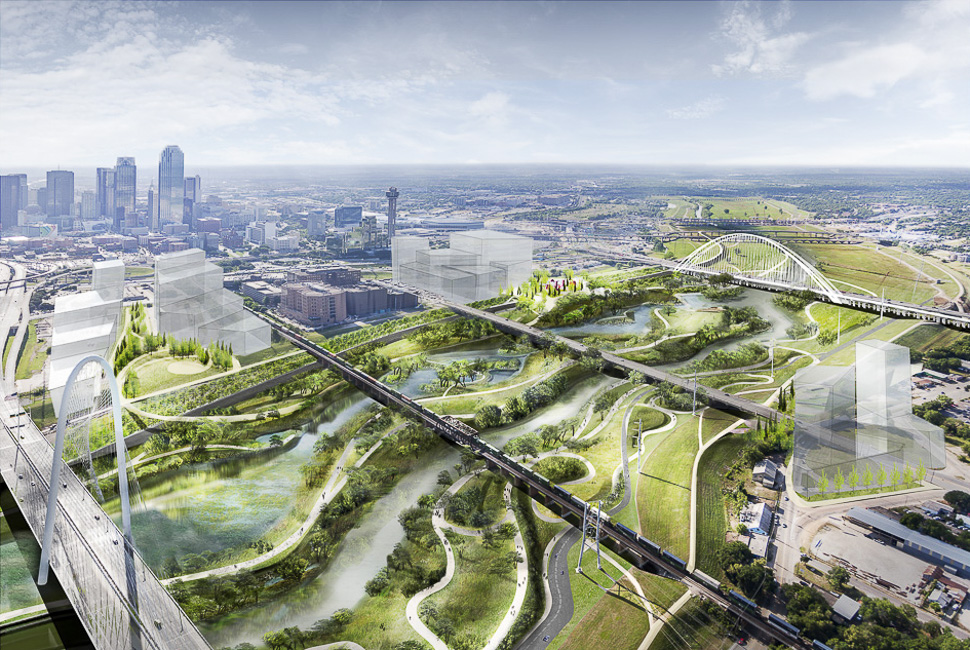 The Trinity River Park concept, unveiled by Mayor Mike Rawlings last May, encompasses more than 285 acres of land near the heart of downtown Dallas. The concept — more than 50 times larger than Klyde Warren Park — envisions a new naturalized river landscape that is ever-changing with miles of pathways and trails within the levees, and includes sites for five elevated parks that will extend from inside the levees into the adjacent communities, according to a release. The concept, which was funded through private donors, also allows for the Trinity Parkway, which will provide primary access into the park and will require separate funding.