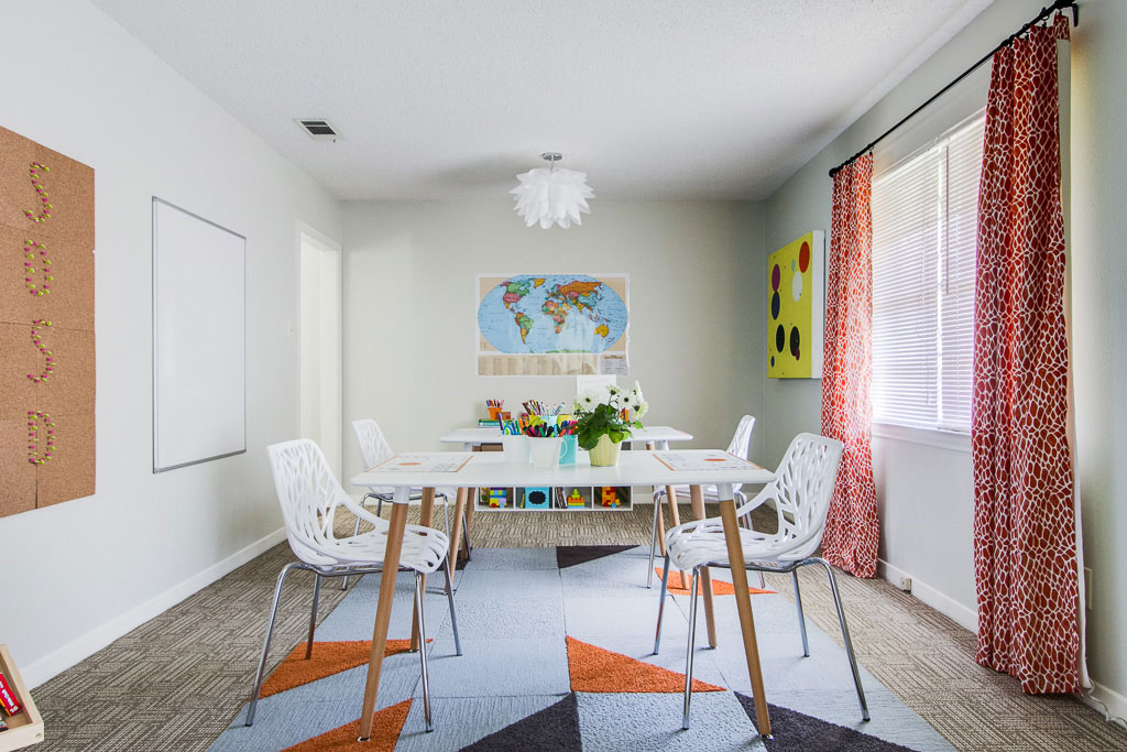 Nonprofit agency Dwell with Dignity seeks to remedy this problem by providing beautifully decorated and fully furnished homes to needy families. Here’s how it works: Dwell with Dignity works with groups in Dallas like Genesis Women’s Shelter and Promise House. Once a family has graduated through one of these programs (that is, they’ve attained necessary life skills, obtained a job, paid first and last month’s rent, etc.), they’re deferred to Dwell with Dignity. The family is interviewed to find out what kind of environment they dream of thriving in, and then the planning, designing, creating, and acquiring begins. Dwell with Dignity approaches each project like a real interior design project—Robison says they won’t use furniture or accessories that she wouldn’t be proud to have in her own home—and when move-in rolls around, volunteers know precisely where every piece of furniture will fit in the space. The house or apartment is decorated over three days’ time, with volunteers doing everything from hanging draperies to ironing bedding to unpacking dishes and washing them. Some of the items are donated, but many—including upholstered items, baby cribs, and kitchenware—are purchased new. The families are also provided with cleaning supplies so that they can maintain their new environment.